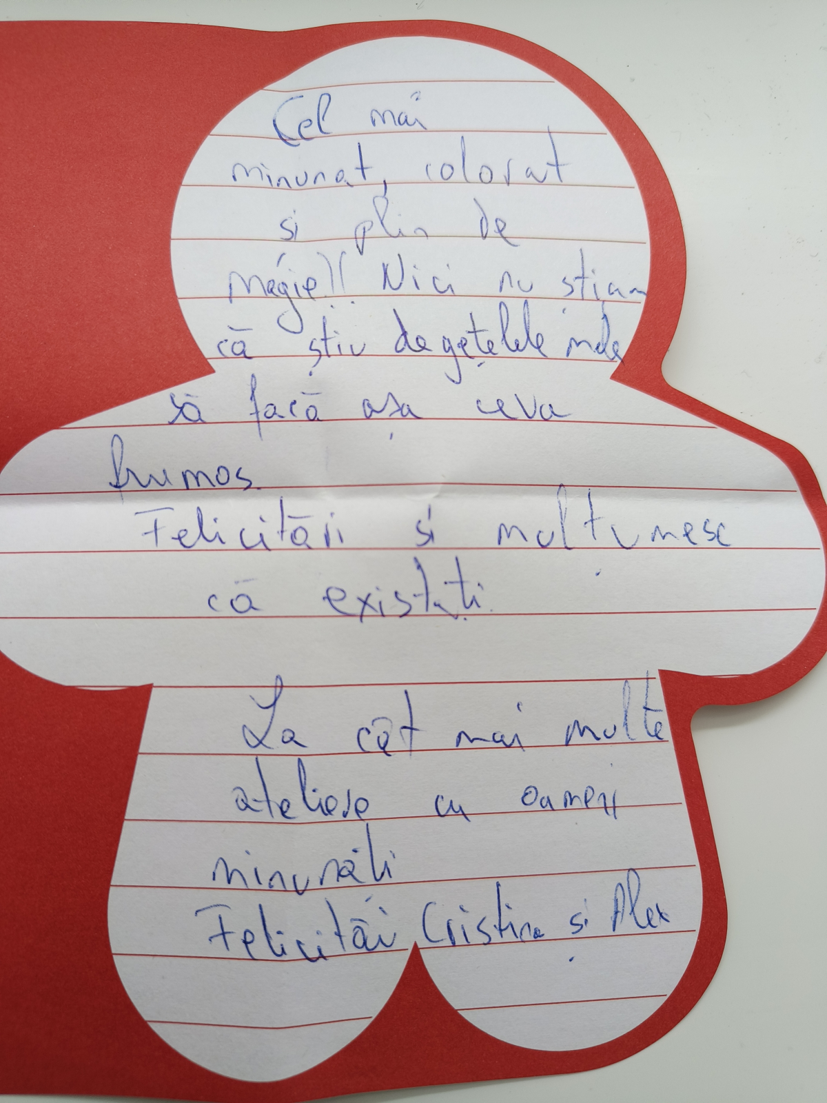 Se va face o lumânare cu tematică de iarnă, craciunista, ce va fi decorată de fiecare persoană în stilul său + un odorizant de dulap.